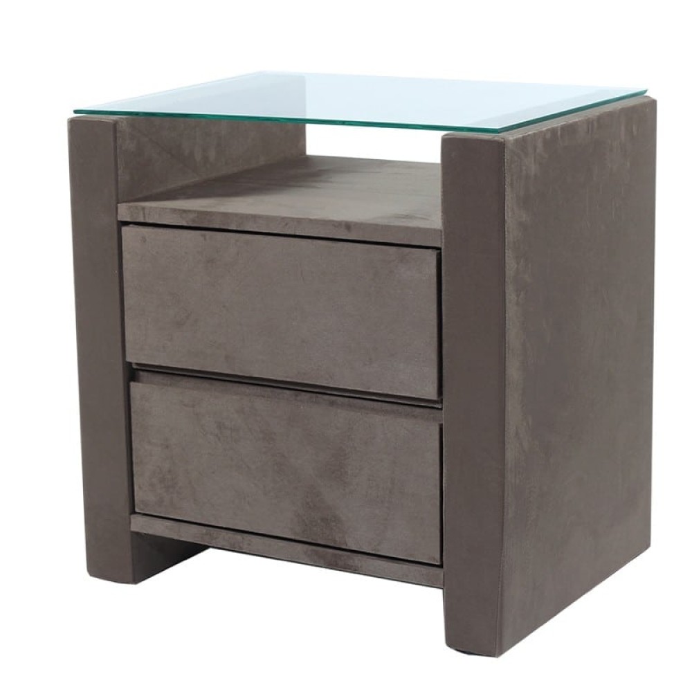 Ξύλινο γκρι κομοδίνο με τζάμι