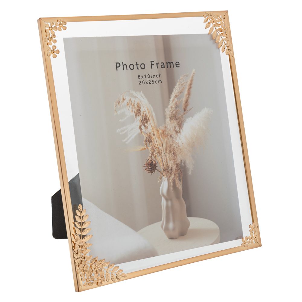 Kορνίζα φωτογραφίας σε χρυσό χρώμα με πλαίσιο και ανάγλυφα λουλούδια με στρας στις γωνίες σε διάσταση 20Χ25εκ.
