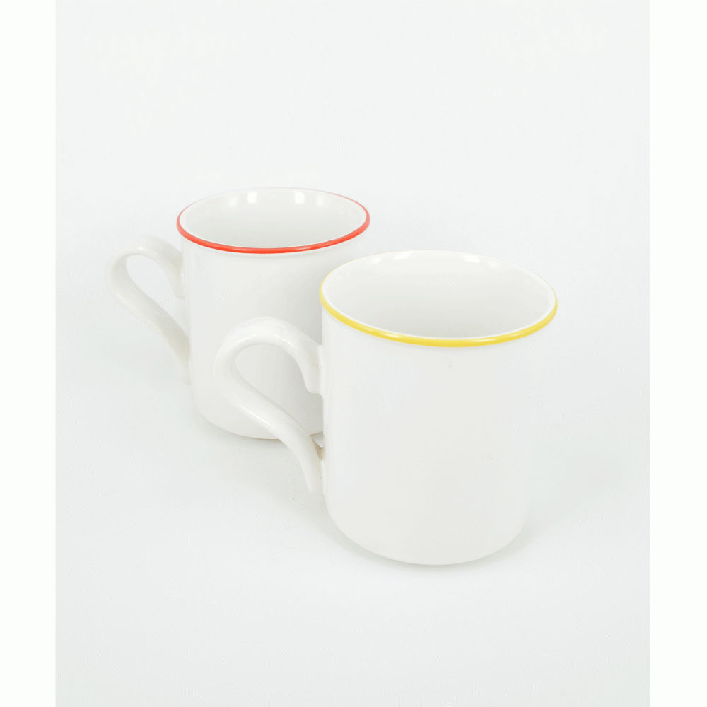 Σε ΑπόθεμαΛιτή, διακριτική, φίνα. Ονειρεμένη λευκή κούπα με κόκκινη ή κίτρινη ρίγα στο χείλος, μια ενωτική θα λέγαμε γραμμή μεταξύ του απαράμιλου design και της απόλαυσης του ροφήματος σας...