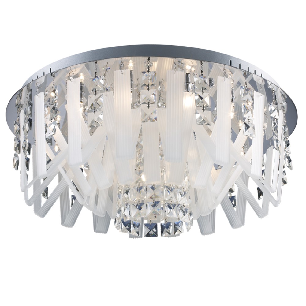 Φωτιστικό οροφής με βάση χρωμίου, αποτελούμενο από χειροποίητο γαλακτερό γυαλί και κρύσταλλα asfour.