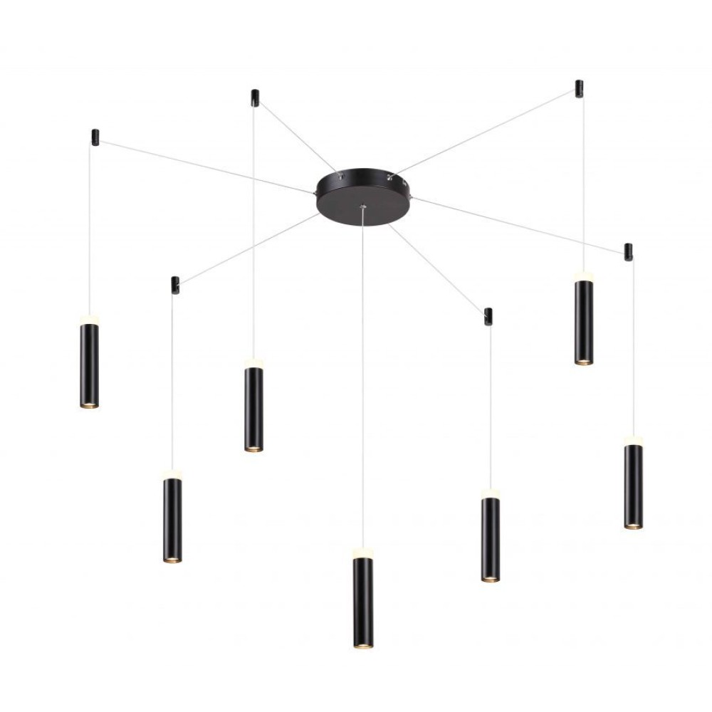 Κρεμαστό πολύφωτο κατασκευασμένο από αλουμίνιο, ακρυλικό και μεταλλική βάση, σε μαύρη ματ απόχρωση και φωτισμό πάνω-κάτω. Με καλώδιο ως και 4 μέτρα που επιτρέπει το σχεδιασμό αράχνης.