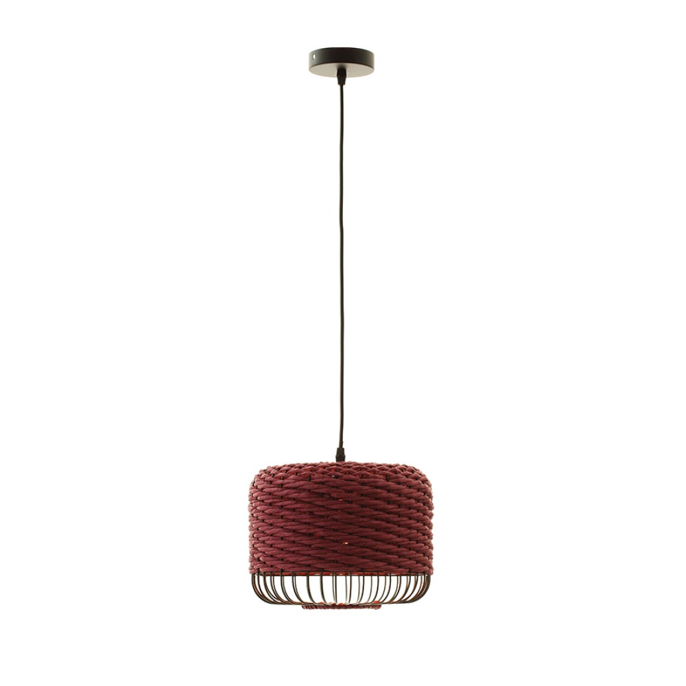 Κρεμαστό μονόφωτο φωτιστικό απο paper rope σε βαθύ μπορντώ χρώμα.