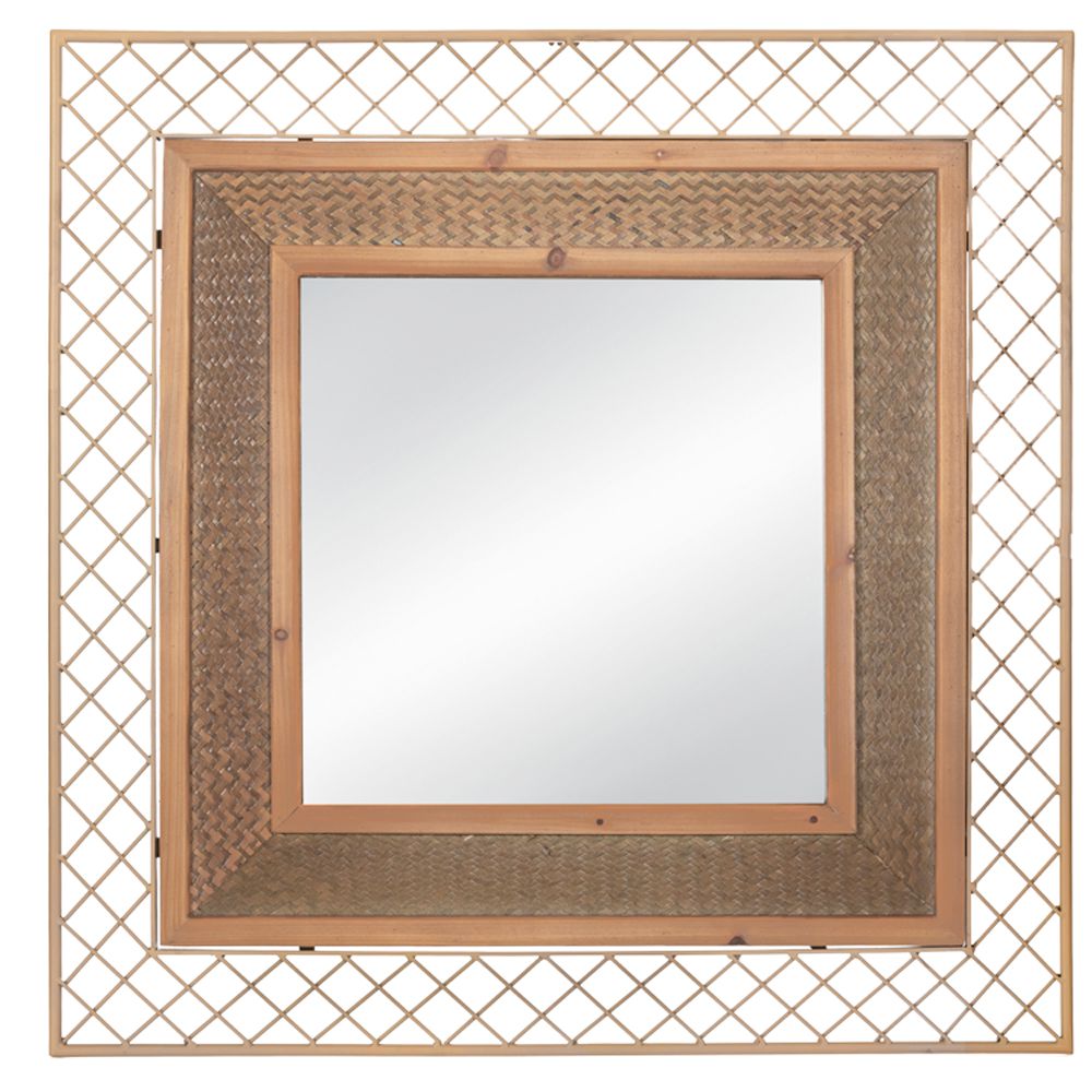 Μπεζ τετράγωνος καθρέφτης τοίχου. Αποτελείται από ξύλο και μέταλλο και έχει πλέγμα στο πλαίσιο. Οι διαστάσεις του είναι 80x80εκ και αποτελεί μία μοντέρνα πρόταση που μπορεί να διακοσμήσει οποιοδήποτε χώρο του σπιτιού σας.