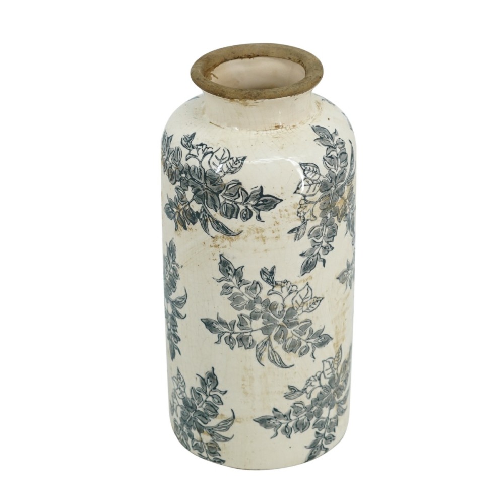 Μπεζ Διακοσμητικό Κεραμικό Βάζο με Λουλούδια