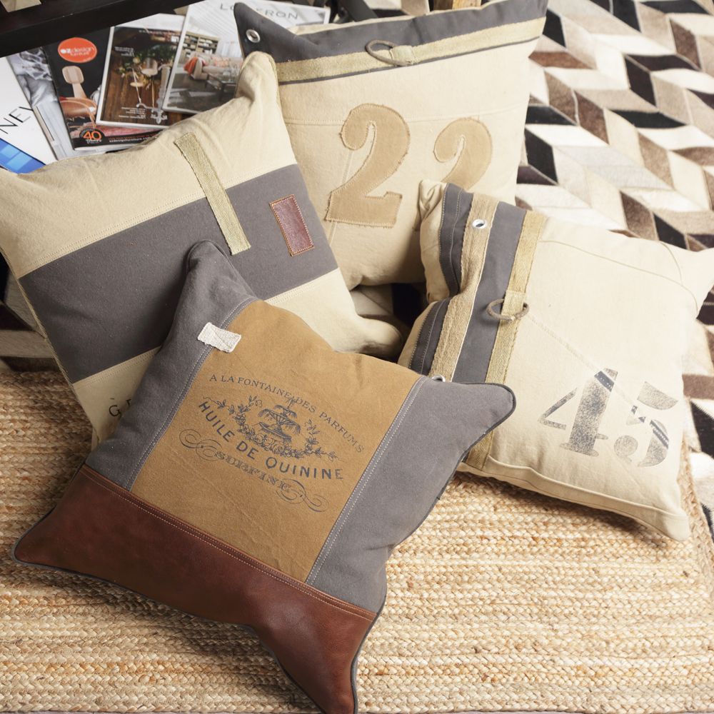 Υφασματινά μαξιλάρια σε 4 διαφορετικά σχέδια διαστάσεων 45x45εκ. Οι αποχρώσεις τους είναι σε γήινους τόνους και προσδίδουν μια vintage αίσθηση στον χώρο σας.