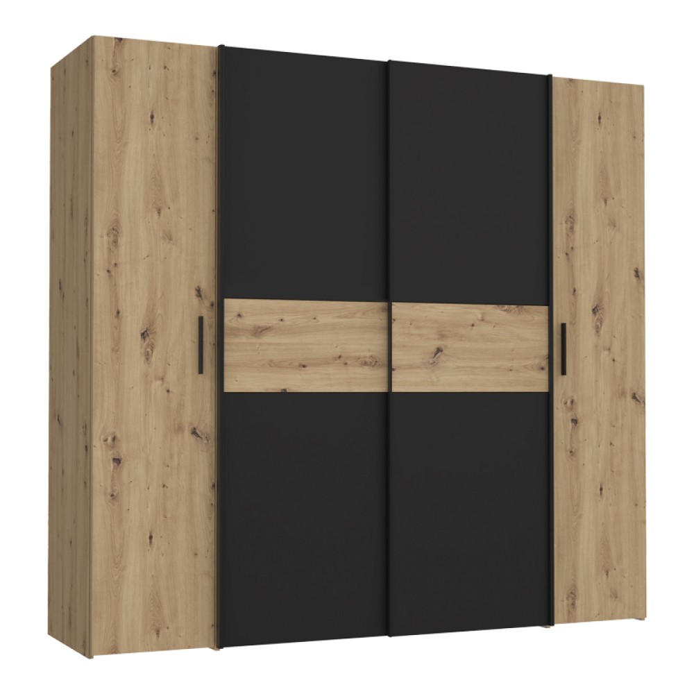 Ντουλάπα ρούχων Bekerk pakoworld τετράφυλλη μαύρο-oak μελαμίνης 200x61.5x190.5εκ