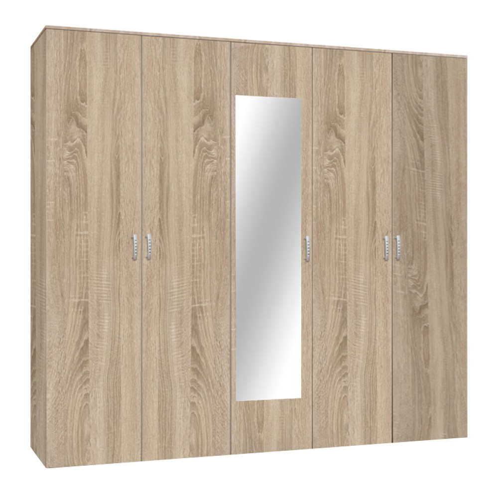 Ντουλάπα πεντάφυλλη με καθρέφτη Luna pakoworld σε sonoma απόχρωση 220x52x200εκ