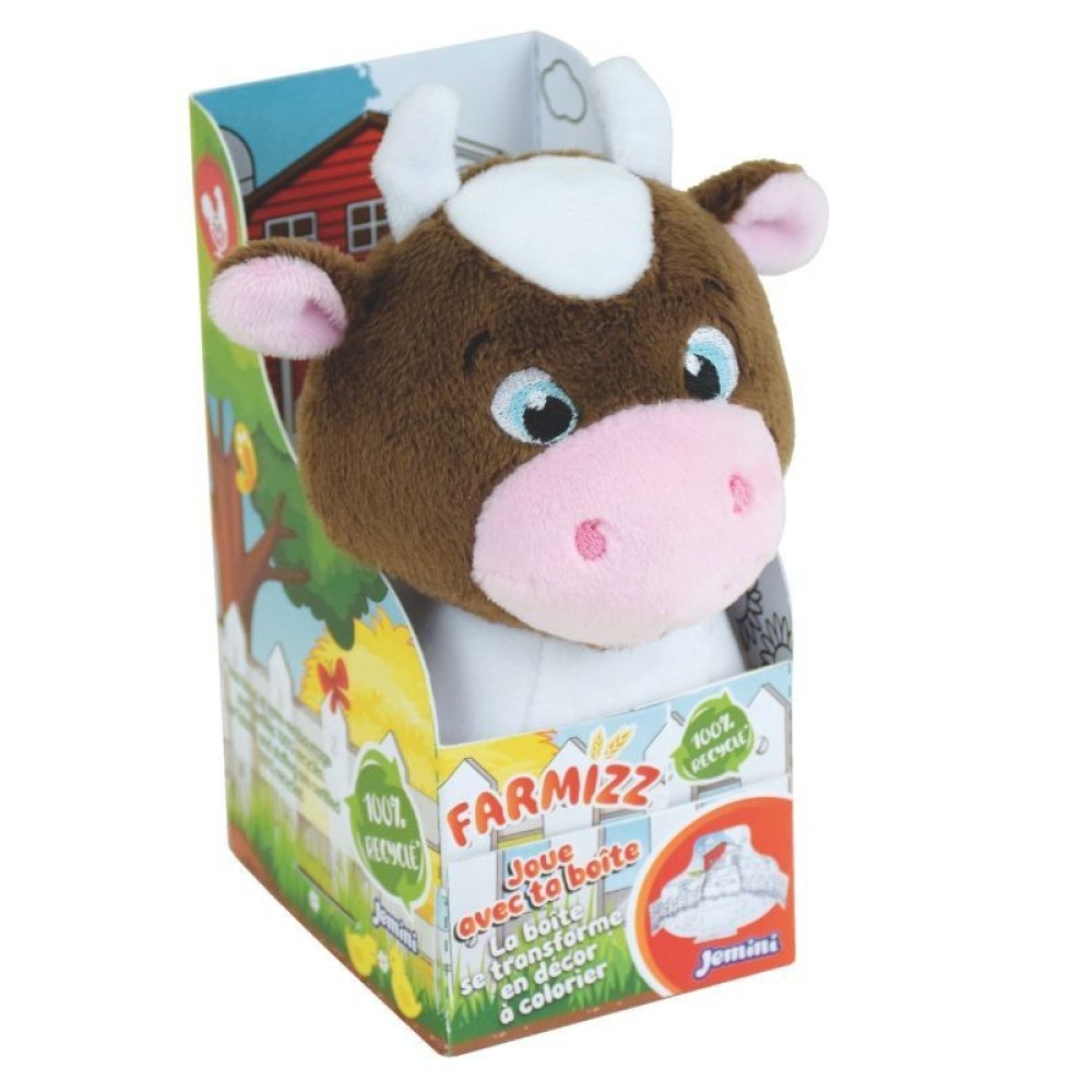 Συλλεκτικά βελούδινα παιχνίδια Farmizz 15 cm κατασκευασμένο από 100% ανακυκλωμένα υλικά. Το κουτί τους μετατρέπεται σε ντεκόρ για να χρωματίσετε. Όλα τα κουτιά της σειράς συνδυάζονται για να δημιουργήσουν μια μεγάλη φάρμα, τη οποία τα παιδιά μπορούν να χρωματίσουν και να εφευρίσκουν αμέτρητες ιστορίες με τους μικρούς της κατοίκους: