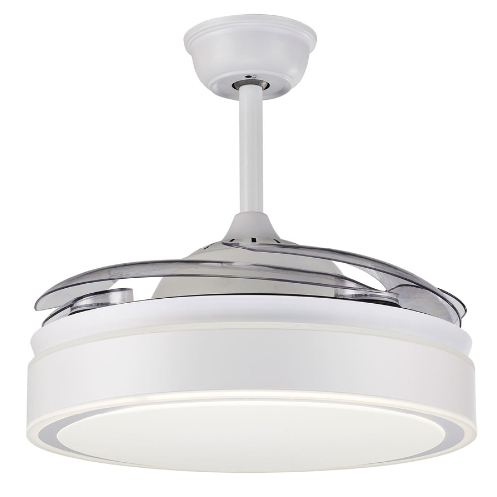 Ανεμιστήρας οροφής με φως, τηλεχειριστήριο και dc μοτέρ με ανοιγόμενα  πτερύγια. Η βάση είναι από αλουμίνιο, σε γκρι χρώμα, και τα πτερύγια από ακρυλικό . Έχει έξι ταχύτητες , χρονοδιακόπτη και υπάρχει η δυνατότητα, μέσω του διακόπτη αλλά και του τηλεχειριστηρίου, αλλαγής θερμοκρασίας χρώματος 3000k/4000k/6000k. Μοτέρ: DC 55 Watt Ψύξη-Θέρμανση: Ναι Πτερύγια: 4 Χώρος Κάλυψης: 20 τ.μ. Τηλεχειριστήριο: Ναι Διάμετρος κλειστός: 40 εκ. Διάμετρος ανοιχτός: 90 εκ. Ύψος: 47 εκ. Τύπος Λαμπτήρα: LED smd Watt: 40W-80W