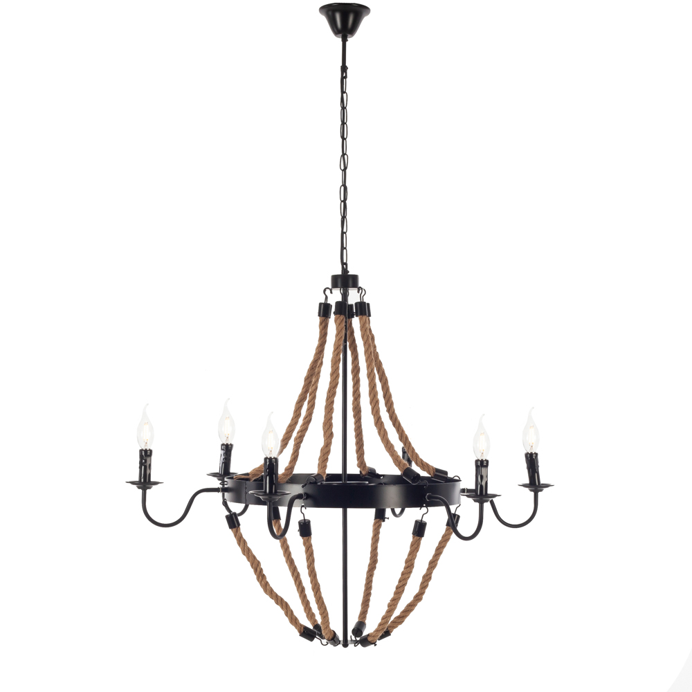 Hemp Rope Φωτιστικό Οροφής 6φωτο (Ε14) με Μαύρο Μέταλλο/Σχοινί