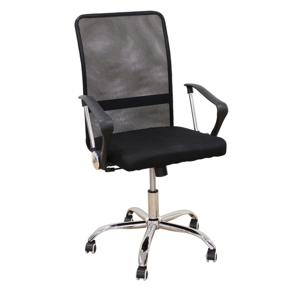 Α9946 πολυθρόνα γραφείου με μοντέρνο σχεδιασμό, πλάτη ενδεδυμένη με μαύρο mesh ύφασμα για να αποτρέπει την εφίδρωση και ανεξάρτητα μπράτσα με κεκλιμένη επιφάνεια που χαρίζουν περισσότερη εργονομία. Ανάκλιση πλάτης για μεγαλύτερη άνεση και μηχανισμό αυξομείωσης του ύψους με αμορτισέρ. Η βάση είναι χρωμίου για μεγαλύτερη αντοχή. Μπορεί να συνδυαστεί σε όλους τους χώρους.