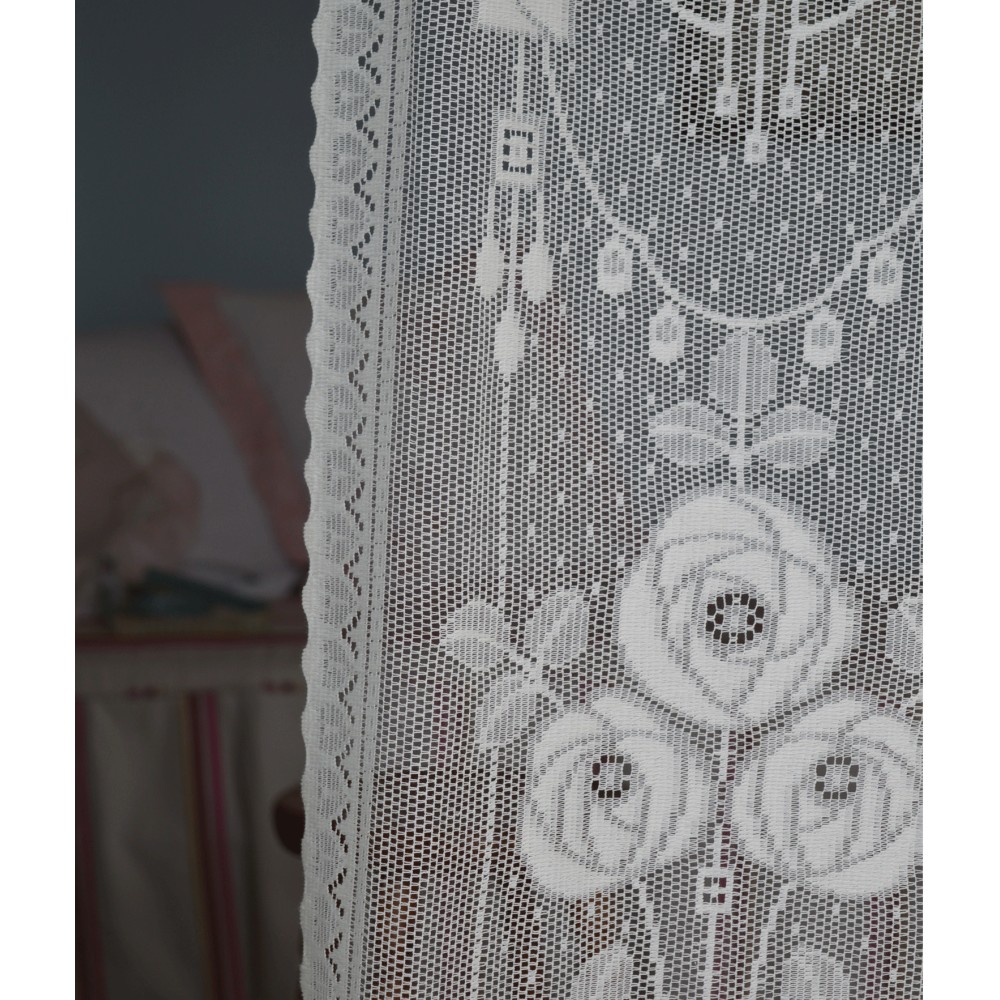 Αφότου αποκτήσετε την δαντέλα της αρεσκείας σας στα μέτρα που χρειάζεστε, εάν το επιθυμείτε, αναλαμβάνουμε να σας την ράψουμε κουρτίνα, ή να την φτιάξουμε κάποιο μαξιλάρι, κουβρ-λι, τραπεζομάνδηλο ή ό,τι άλλο θελήσετε. Το κόστος για τα ραφτικά δεν περιλαμβάνεται στην παρούσα τιμή.