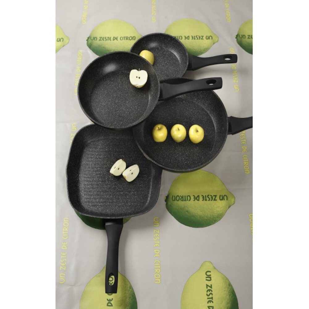 Τηγάνι Cryspo Trio Petra αντικολλητικό σε διάφορες διαστάσεις, κατάλληλο για κάθε εστία (ακόμα και τις επαγωγικές), ιδανικό για κάθε σπίτι! Κατασκευασμένο από ψήγματα πραγματικής πέτρας, προσδίδει τέλεια γεύση σαν να μαγειρεύετε πάνω σε γνήσια πέτρα. Με αντικολλητική επίστρωση εξαιρετικής ποιότητας. Εξασφαλίζει υγιεινό μαγείρεμα, δεν χρειάζεται η χρήση λαδιού. Διαθέτει τεχνολογία 100% PFOA-Free και 100% PTFE-Free. Με εξαιρετική αντοχή και ευκολία στον καθαρισμό (easy clean effect), καθώς μπορεί να καθαριστεί απλά και μόνο με ένα νωπό πανί.