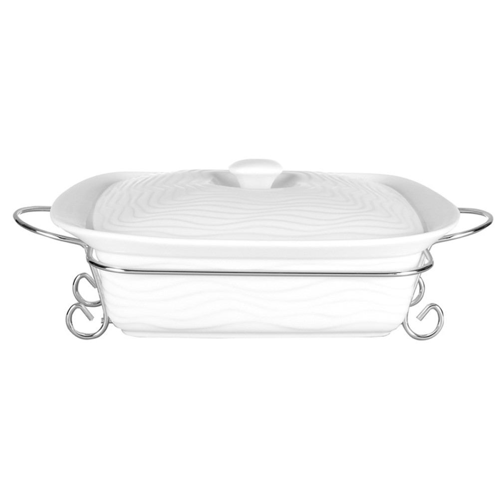 Γάστρα Πυρίμαχη Τετράγωνη Λευκή Σε Μεταλλική Βάση ”Waves” 38cm