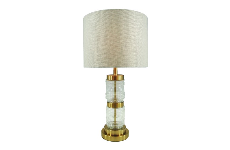 Επιτραπέζιο φωτιστικό Wenxie Inart Ε27 χρυσό μέταλλο-γυαλί-μπεζ ύφασμα Φ32x53εκ