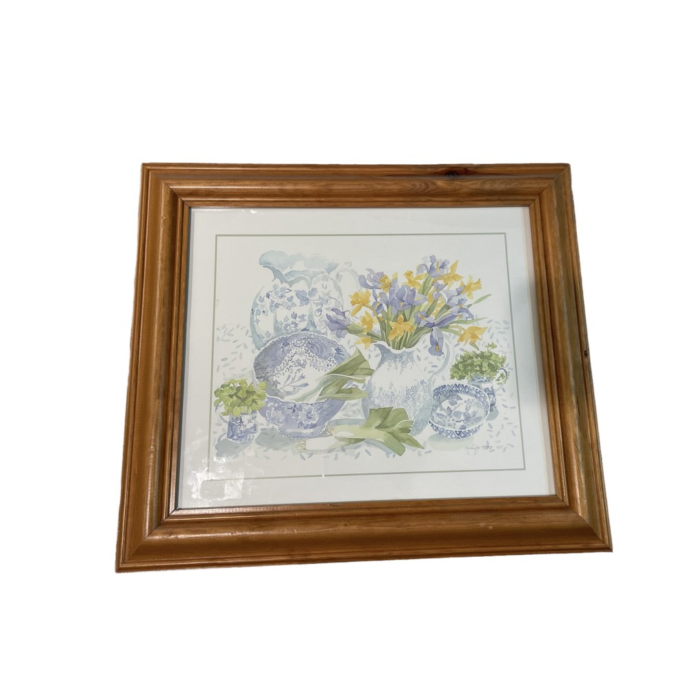 Γκραβούρα με θέματα κουζίνας σε κάδρο από φυσική οξιά Αγγλικής κατασκευής 37x33cm (μπλε)