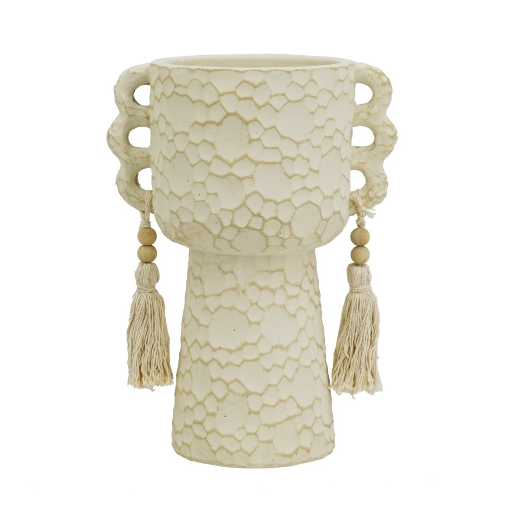 Artekko Antique Βάζο/Κασπώ με Φούντες από Τερακότα Μπεζ (17.6x12.5x24)cm - 17.6cm x 12.5cm x 24cm