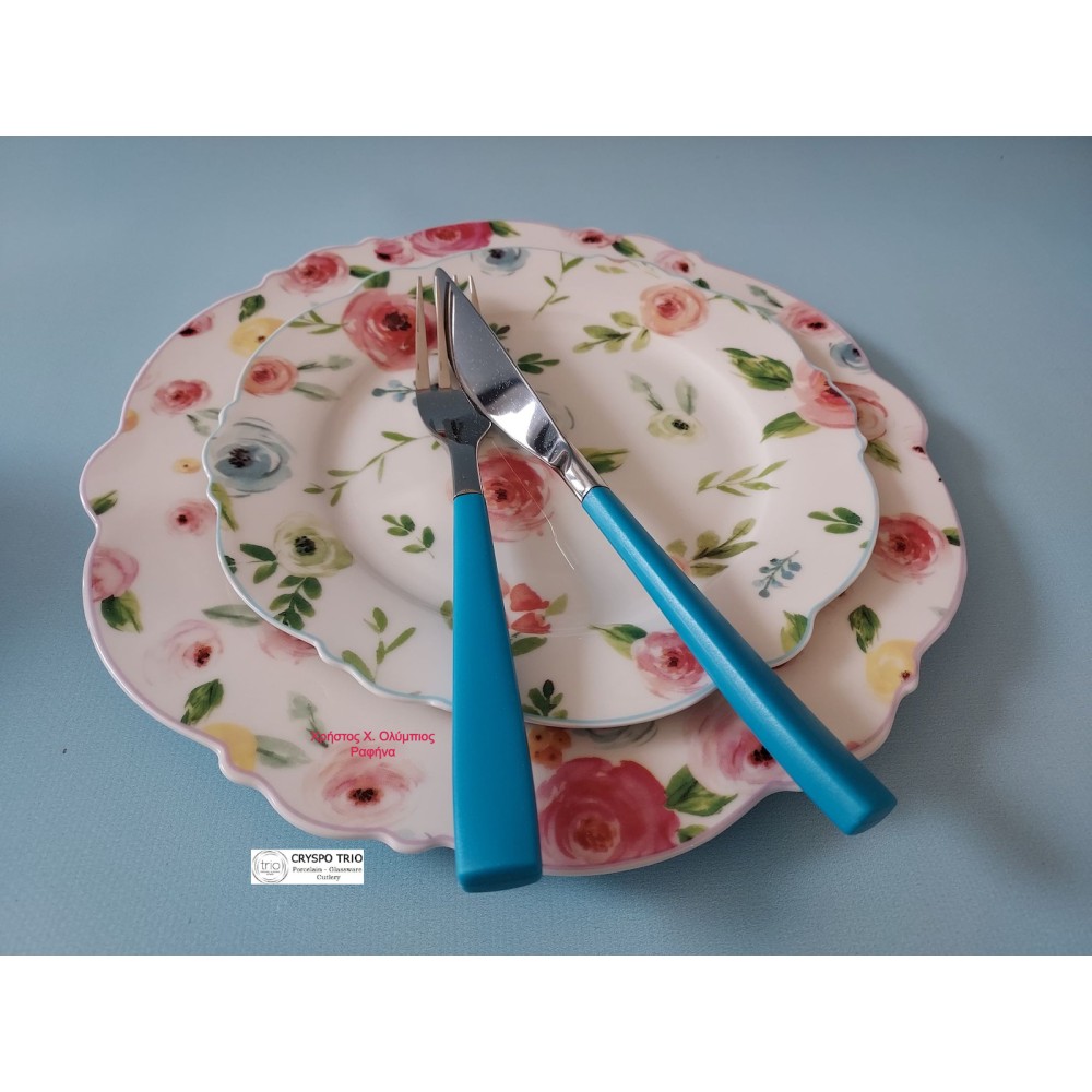 Cryspo Trio Primavera Πιάτο Γλυκού από Πορσελάνη Blue με Διάμετρο 21cm