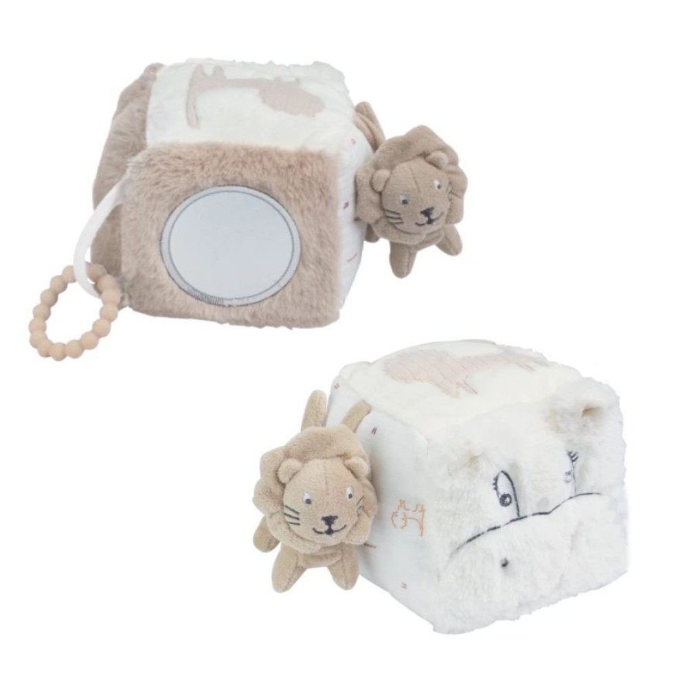 Ο λούτρινος κύβος δραστηριοτήτων έχει διαστάσεις: 12 x 12 x 12 cm και είναι ιδανικός για μικρά χεράκια.