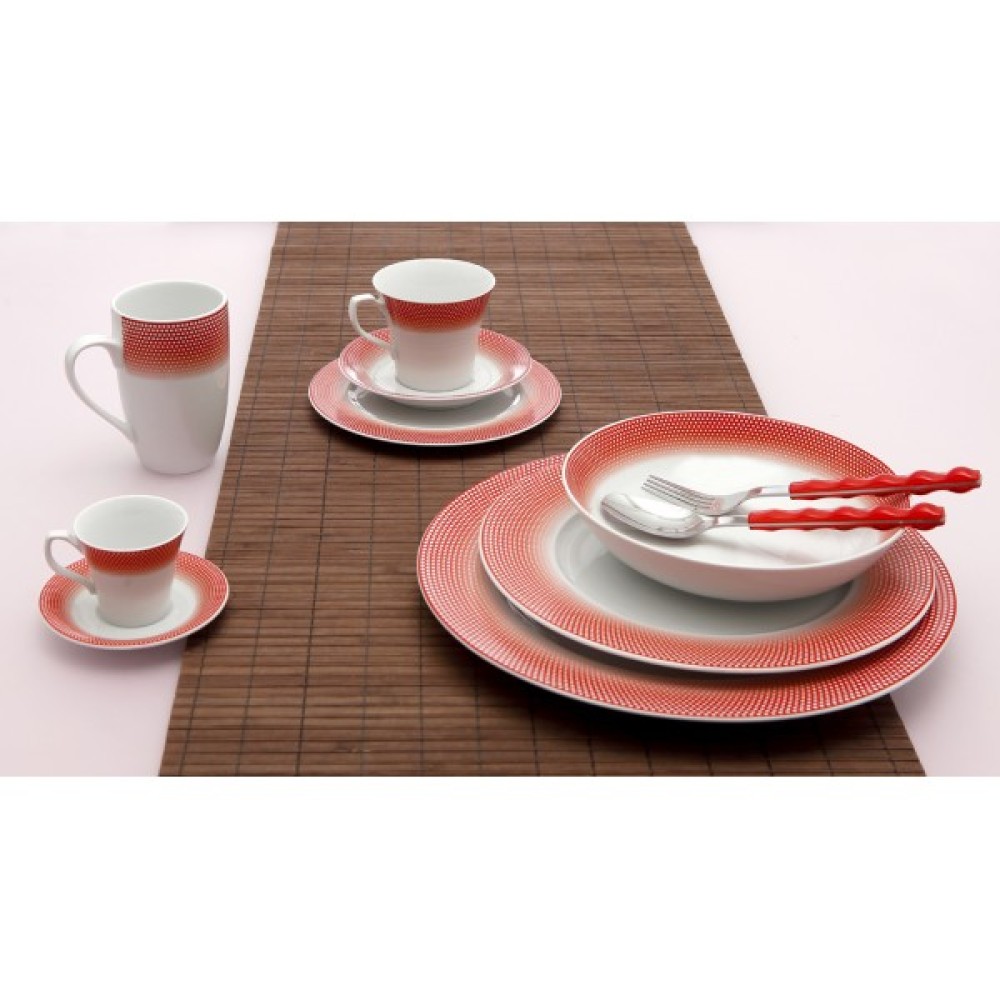 - Περιγραφή: 6 πιάτα φαγητού, 6 βαθυά, 6 φρούτου, 1 σαλατιέρα και 1 στρογγυλή πιατέλα
