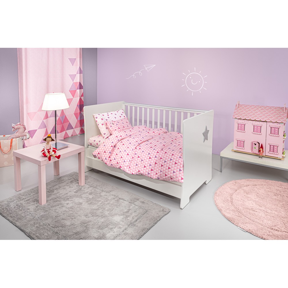 Σετ 3τμχ. βρεφικά σεντόνια από 100% βαμβάκι. Το σετ σεντονιών αποτελείται από πανωσέντονο – κατωσέντονο 115x170εκ. και μία μαξιλαροθήκη 30x40εκ.