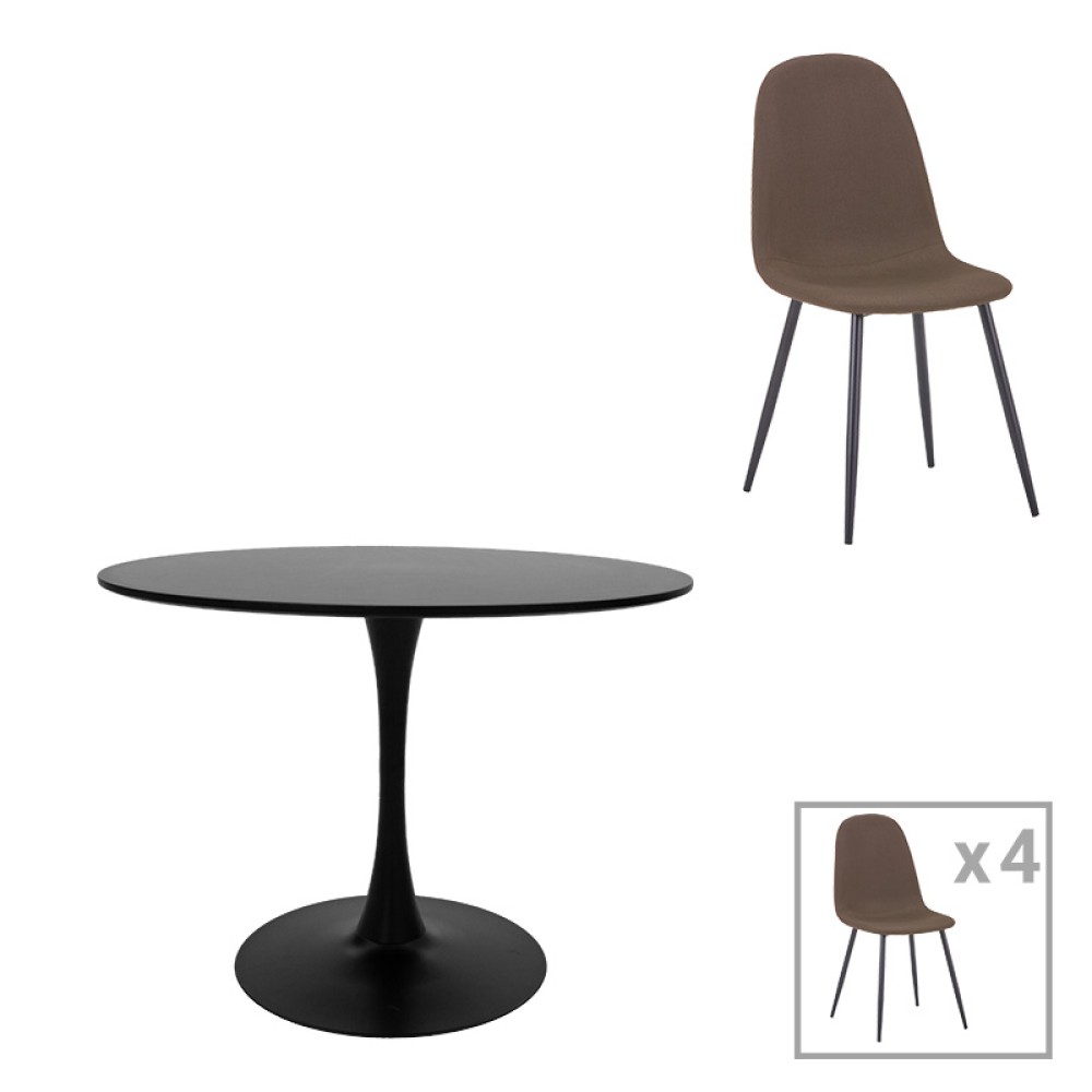 Τραπεζαρία Bella-Balou pakoworld σετ 5τεμ MDF μαύρο-ύφασμα καφέ Φ120x73εκ