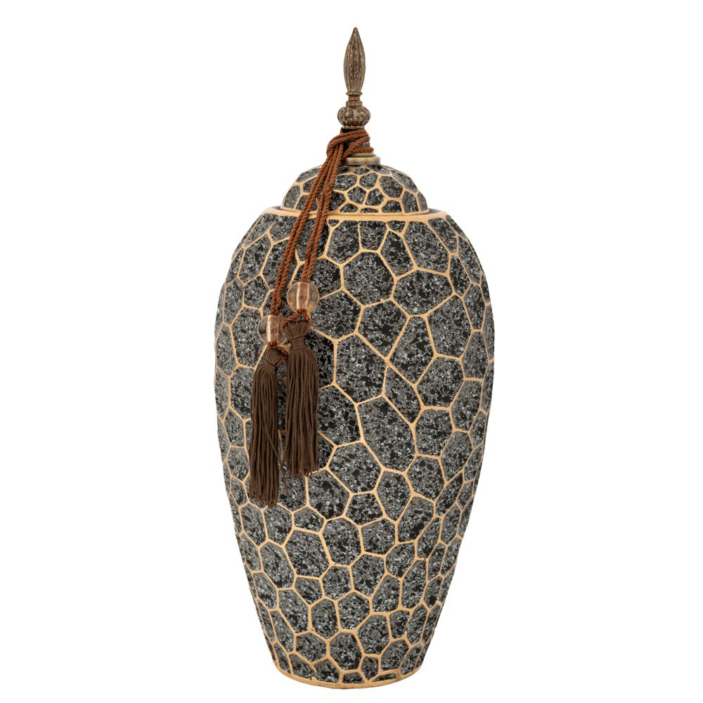 ΓΚΡΙ ΚΕΡΑΜΙΚΟ ΣΤΡΟΓΓΥΛΟ ΒΑΖΟ ΜΕ ΚΑΠΑΚΙ ΚΑΙ ΧΡΥΣΕΣ ΑΝΑΓΛΥΦΕΣ ΛΕΠΤΟΜΕΡΕΙΕΣ 19Χ40ΕΚ