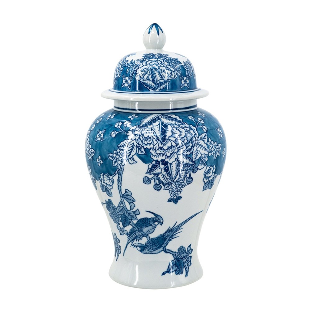 Διακοσμητικό Δοχείο Βάζο με Καπάκι Πορσελάνης σε Άσπρο με Μπλε