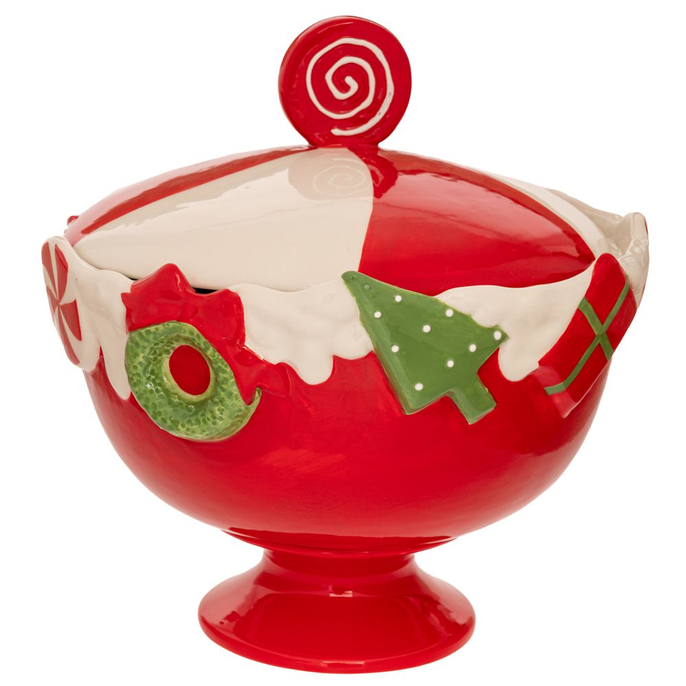 ΚΟΚΚΙΝΗ ΛΕΥΚΗ ΚΕΡΑΜΙΚΗ ΜΠΙΣΚΟΤΙΕΡΑ ΣΕ ΣΧΗΜΑ ΧΡΙΣΤΟΥΓΕΝΝΙΑΤΙΚΟ CUPCAKE 18Χ18Χ22ΕΚ