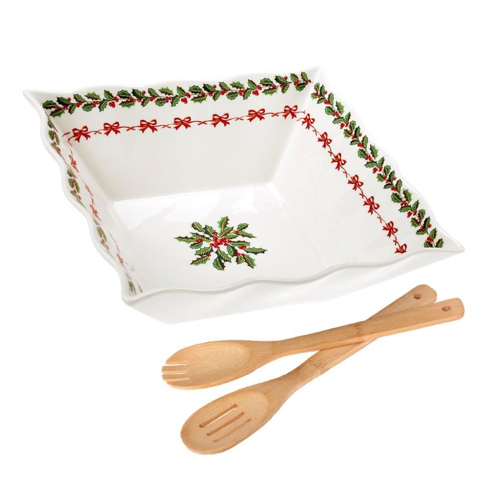 CRYSPO TRIO Noel Σαλατιέρα τετράγωνη πορσελάνινη με κουτάλες μπαμπού